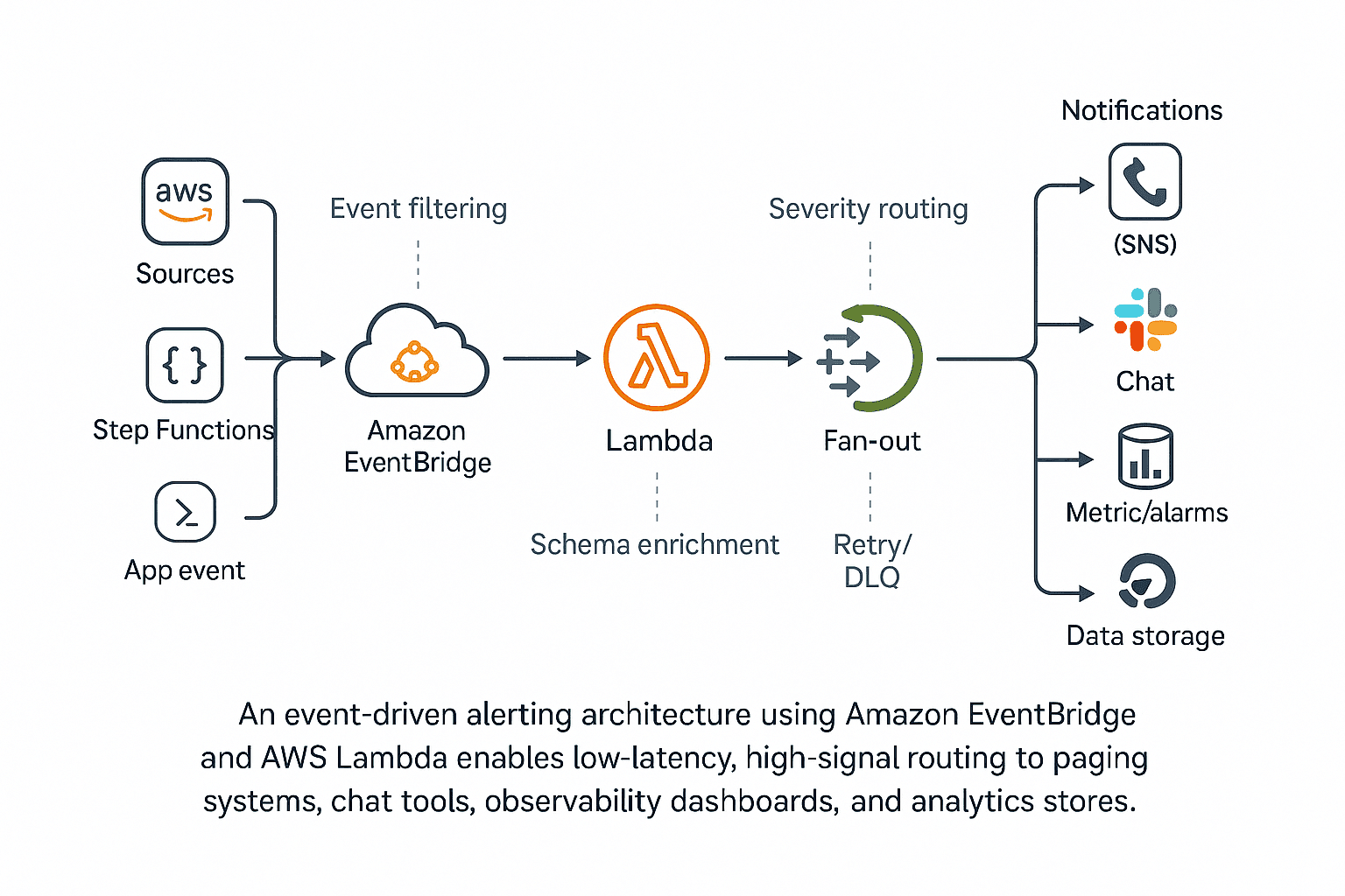 With EventBridge and Lambda, you can build an alerting setup that reacts quickly, scales when necessary, and remains quiet the rest of the time.