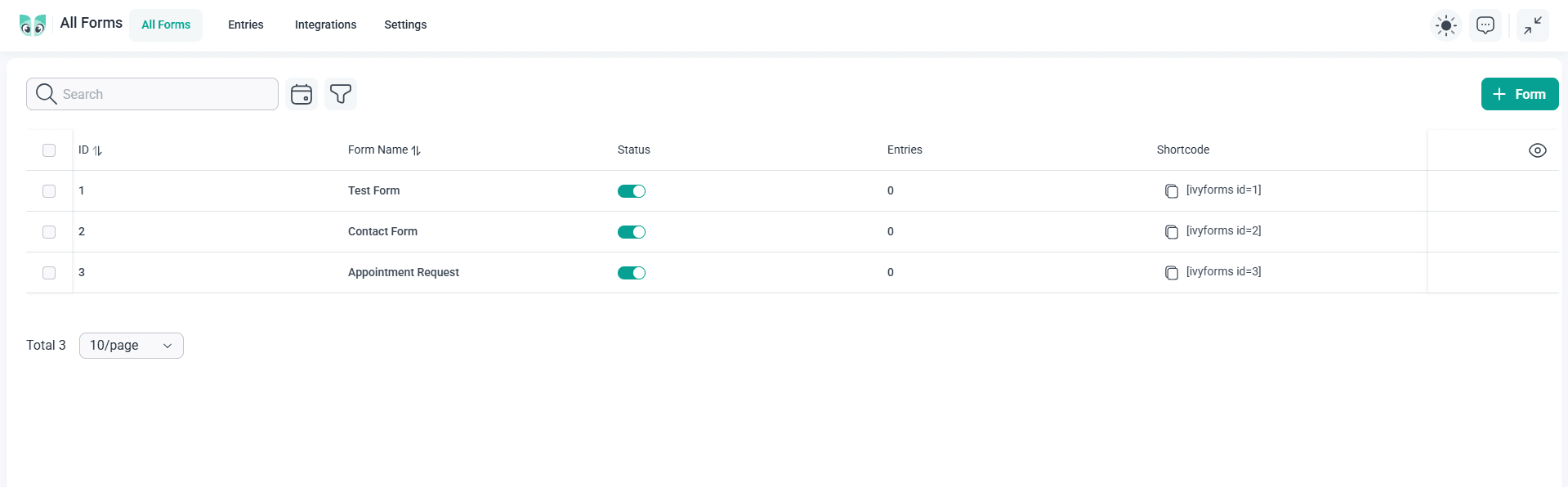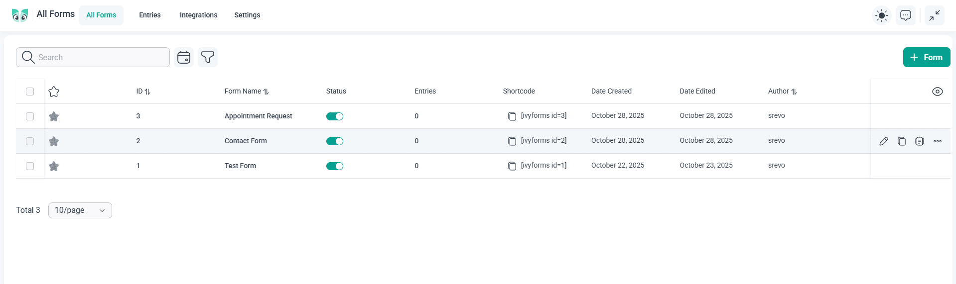 The IvyForms dashboard makes it easy to keep things organized.