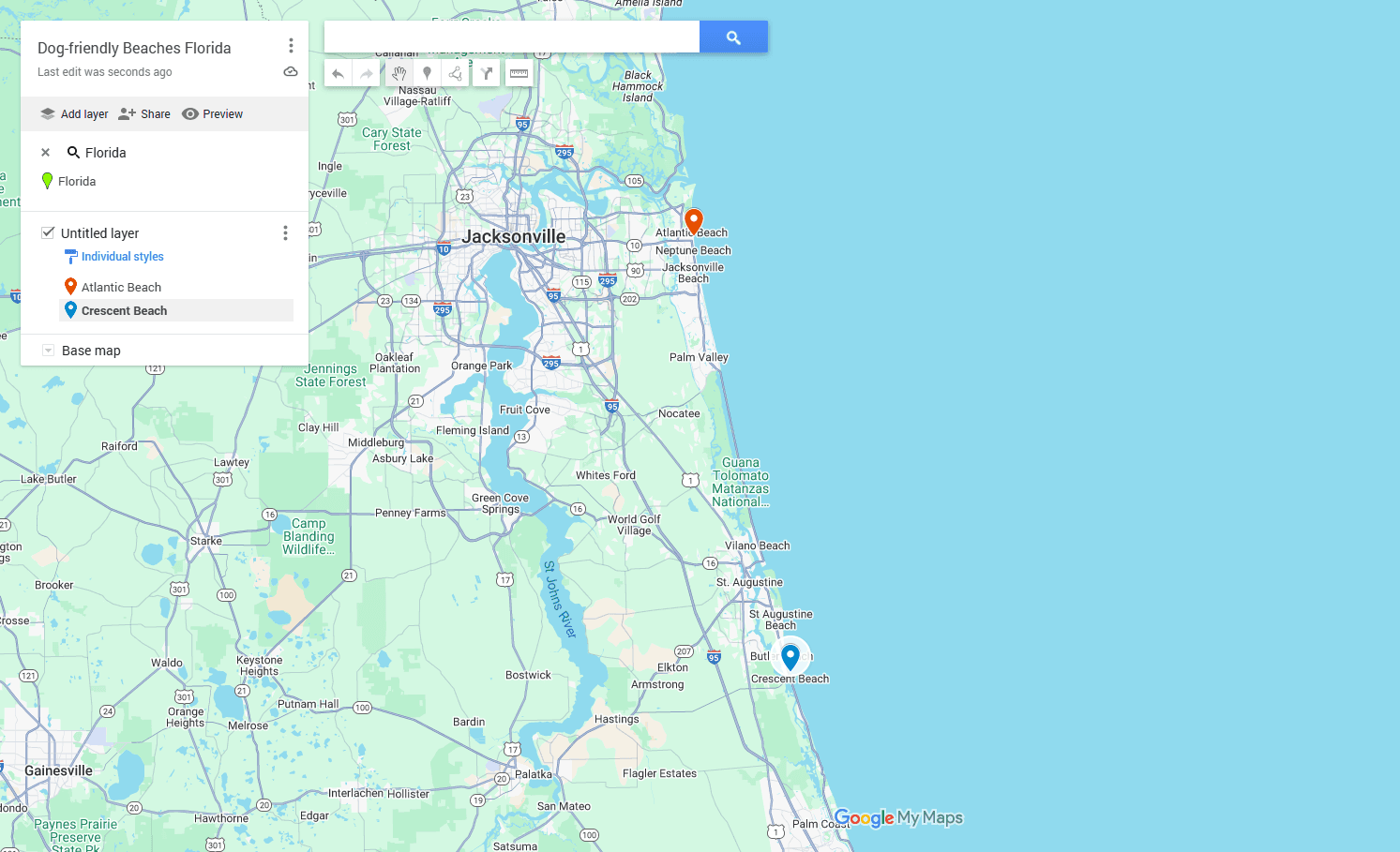 For example, let’s say you wanted to make a map of Florida’s best dog-friendly beaches to embed on your website.
