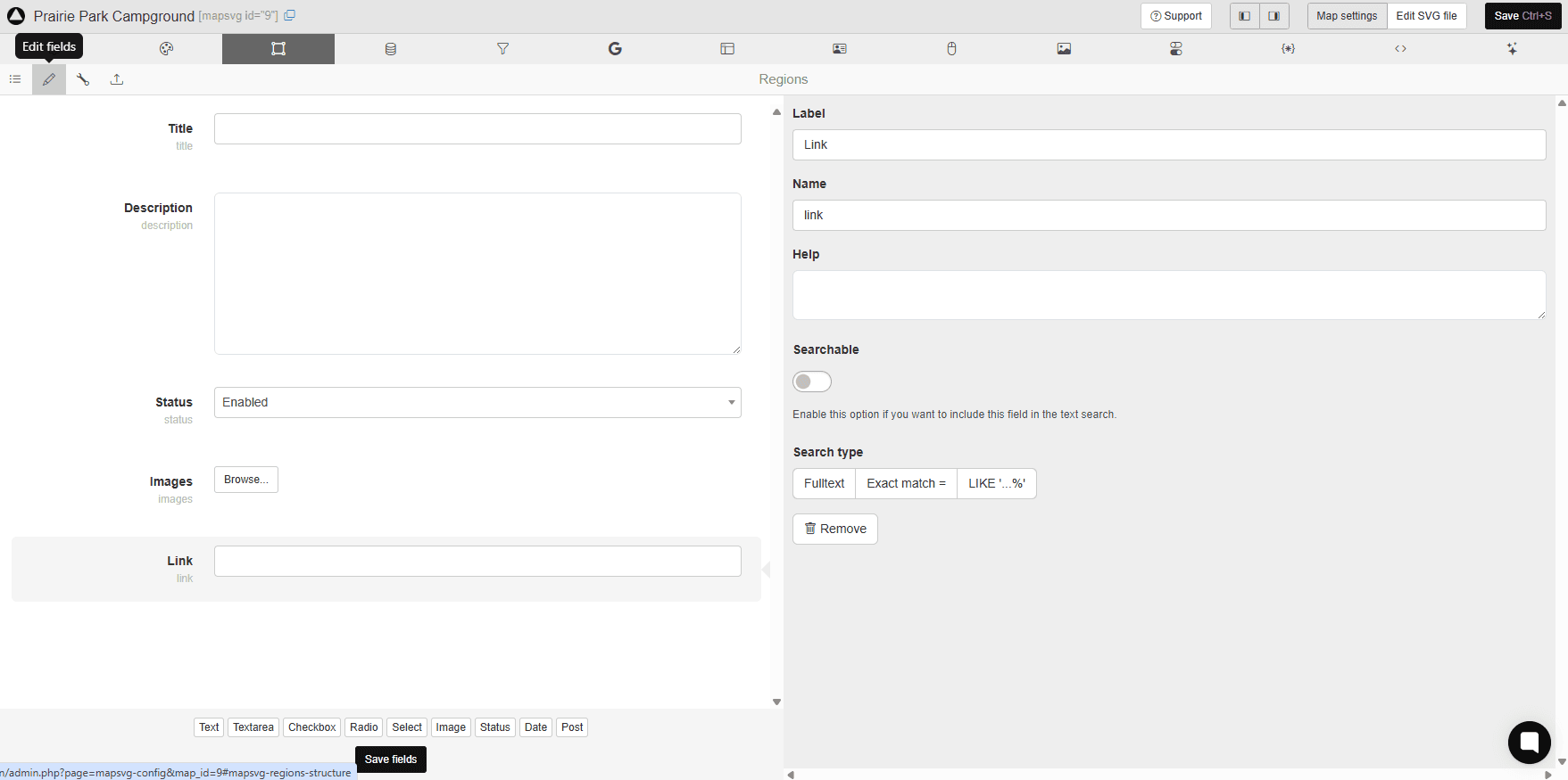 If you want to modify what information you can attach to each Region, click the Edit Fields button (the pencil icon) above the settings panel.