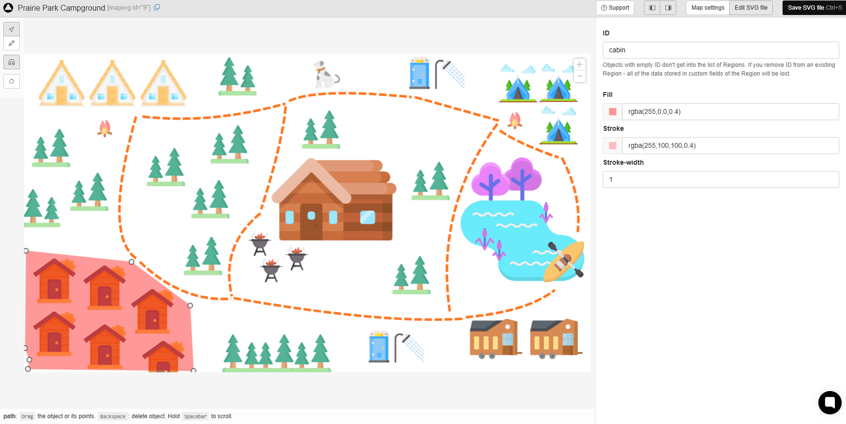 On the left is the SVG file you imported. In this case, it’s an illustrated map of Prairie Park campground to help visitors get around.