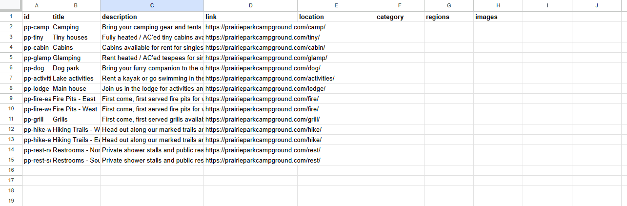 Once you have your spreadsheet mapped to the fields in MapSVG, enter all the relevant info you can. At the very least, include an ID and Title. You can fill in the rest of the details later inside the plugin.