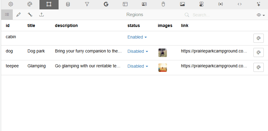 The new “cabin” Region I created in the screenshot above has been added to my list. But it’s missing important details. To fill these in, click on the Region you want to edit.