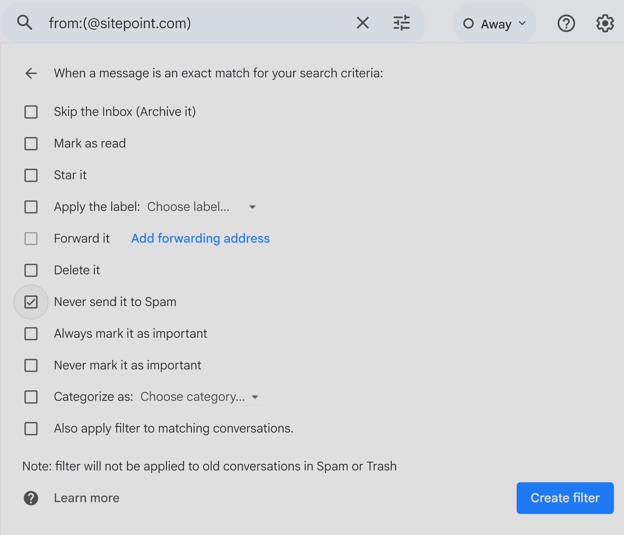 You can also create a filter and whitelist @sitepoint domain in your email provider settings: